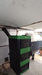 Automatický kotel na uhlí/pelety s velkou násypkou, kombinovaný bojler, rozvody v mědi.